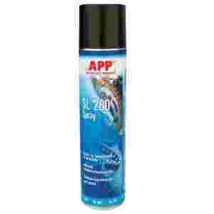 APP SL 280 to smar do łańcuchów w aerozolu - 400 ml. Syntetyczny środek smarny do trwałej konserwacji łańcuchów, linek, łożysk i przekładni zębatych. Ogranicza tarcie i hałasy eksploatacyjne. Formuła preparatu ogranicza przywieranie cząsteczek kurzu i piasku do przesmarowanych elementów.