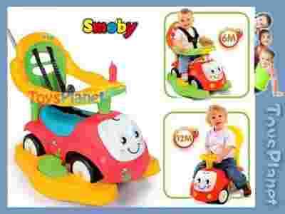 Jeździk dzięki zamontowanym płozom pełni funkcje bujaczka na biegunach.