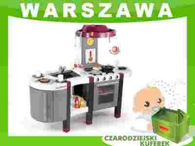 Kuchnia elektroniczna z efektami świetlnymi i dźwiękowymi. Zawiera palniki, kuchenkę gazową z dźwiękami, głęboki zlewozmywak z kranem, okap z haczykami do wieszania akcesoriów, liczne półki, mały stolik, zegar, duży piekarnik z wyjmowanym grillem oraz 33 akcesoria, w tym: imitacje produktów spożywczych, garnek, patelnię, kubki, talerze, szklanki, sztućce i wiele innych. Baterie: R6/AA, 1,5 x2. Nie zawiera baterii. Wymiary: 115x41x97 cm, opakowanie: 76x37,5x75,5 cm