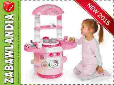 Pierwsza kuchnia Hello Kitty to propozycja ciekawej i wciągającej zabawy dla młodszych dzieci, które chętnie naśladują zajęcia dorosłych i w bezpieczny sposób mogą bawić się w małych kucharzy. Ciekawy i nowoczesny design, a także ładna i żywa kolorystyka, nawiązująca do gamy barw charakterystycznych dla zabawnej kotki Hello Kitty sprawiają, że dzieci będą uwielbiały bawić się tą kuchnią. Mali kucharze znajdą tu 2 "palniki gazowe", segregator na sztućce, półeczki na przyprawy na wspornikach pochłaniacza, jedną półkę łącząca wsporniki. Na pochłaniaczu znajdują się haczyki, na których można powiesić sztućce, panel, na którym znajduje się zlewozmywak z kranem. Miejsce na naczynia i "gorące" garnki rozsuwa się, odsłaniając kuwetki na sztućce i inne przybory kuchenne. Pod blatem umieszczono piekarni z otwieranymi drzwiczkami, sterowany kurkami, a po bokach wkomponowano kolejne półeczki, których nigdy za wiele w kuchni. Wśród akcesoriów znajdują się: garnek, rondel, pokrywka, 2 talerze, sztućce (łyżeczki, widelce, noże), 2 kubki, 2 szklanki, solniczka. Podobnie, jak inne produkty firmy Smoby, kuchnię charakteryzuje wysoka jakość i niespotykane wzornictwo!