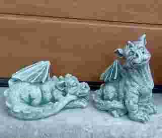Smok, smoki do ogrodu -biały beton, komplet 2 szt