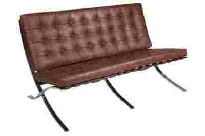 Jest to zaprojektowana w 1929 roku sofa, która powstała na zamówienie, i stanęła w niemieckim pawilonie na wystawie w Barcelonie. Charakterystycznie powyginana w kształt litery "X" chromowana podstawa oraz pikowana w kwadraty skóra naturalna to najbardziej charakterystyczne cechy tego produktu. Cała kolekcja Barcelona to fotel z podnóżkiem, sofy, ławki, leżanka i stolik. Sofa wykonana jest ze skóry naturalnej. Prezentowany produkt jest inspirowany projektem Barcelona.