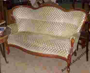 Sofa w stylu Ludwika Filipa z 2 połowy XIX wieku, wykonana z litego drewna mahoniowego, tapicerowana. Mebel bardzo ładny i subtelny w formie, uwieńczony śliczną, ręcznie rzeźbioną koronką. Sofa idealna do salonu.