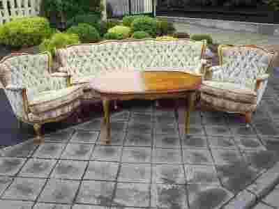 Przedmiotem aukcji jest Przepiękny komplet w stylu ludwika ( kanapa 3 os, plus dwa fotele ).