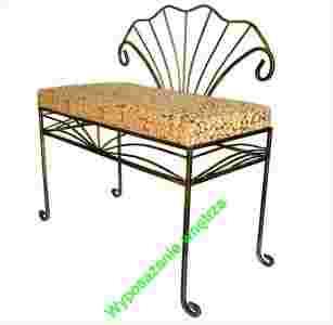 Przedmiotem aukcji jest wykonana z metalu sofa z miękkim siedziskiem w komplecie.