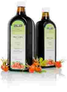 Czysty sok z owoców róży, bogaty w naturalną witaminę C, zawiera beta-karoten, likopen i bioflawonoidy.