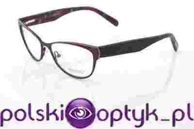 Oprawa wykonana z metalu najwyższej jakości w kolorze bordowym z kontrastującymi detalami i szerokimi, plastikowymi zausznikami. Przeznaczona dla pań szukających modnej oprawy w klasycznym kształcie.