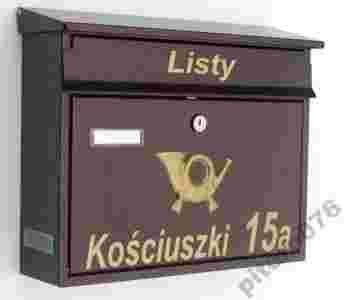 Duża i praktyczna skrzynka na listy z dowolnym napisem.