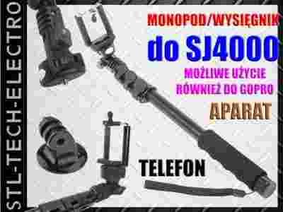 Ramię teleskopowe 110cm MONOPOD z adapterem do SJ4000 oraz kamer i aparatów z gwintem 1/4" - pasuje również do serii GoPro - kolory czarny.