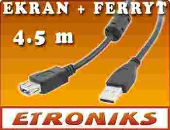 SOLIDNY PRZEDŁUŻACZ USB Z DŁAWIKIEM FERRYTOWYM DŁ. 450 cm.