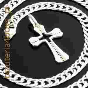 Solidny srebrny łańcuch Romb 50 cm 5,9mm + Krzyż