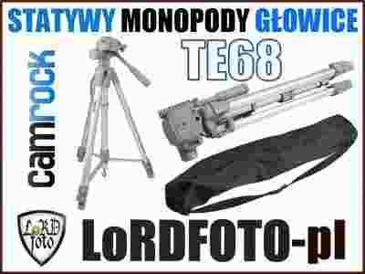 Camrock TE68 to amatorski, bardzo wysoki statyw aluminiowy. Grube nogi o specjalnym przekroju gwarantują wyjątkową stabilność oraz wytrzymałość. Wykonany jest niezwykle solidnie z wzmocnionego aluminium. Znakomicie nadaje się do stosowania z lustrzankami, cięższymi aparatami cyfrowymi oraz kamerami.