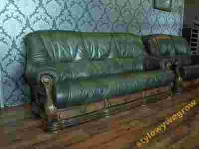 Solidny wypoczynek 3+2. Zielona skóra + dąb. Ideał