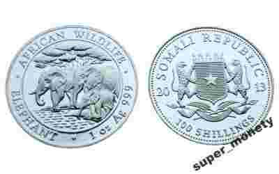 Somalia 100 sch Słonie 1 OZ Ag.[zasłonięte]999 20