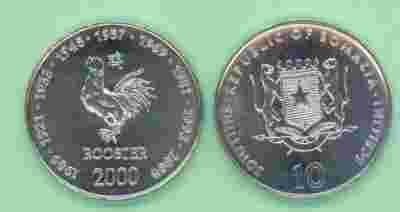 Somalia 10 Shillings Kogut 2000r - mennicza