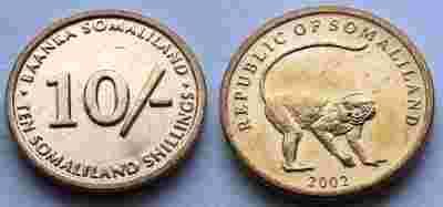 SOMALILAND 10 SHILLINGS 2002 MAŁPA MENNICZA