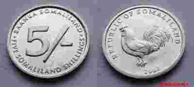 SOMALILAND 5 SHILLINGS 2002 KOGUT MENNICZA