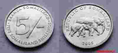 SOMALILAND 5 SHILLINGS 2005 SŁOŃ SŁONIE MENNICZA