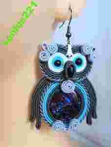 Do wykonania kolczyków użyto między innymi:sutasz czeskiej firmy Pega w kolorach: odcienie popielatego ,niebieski