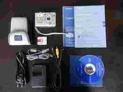 W komplecie znajduje się aparat, ładowarka sieciowa, akumulator litowo-jonowy (w pełni sprawny), przewód USB, przewód AV, oprogramowanie, instrukcja obsługi w języku polskim, etui (w stanie dobrym).