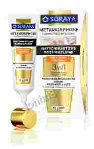 Nowość! Metamorphose Przeciwzmarszczkowe serum rozświetlające 3w1 (rozświetlacz-baza-krem) Przeciwzmarszczkowe serum rozświetlające 3w1 zaprojektowane zostało, aby natychmiastowo dodawać cerze blasku i sprawiać, aby wyglądała promiennie, świeżo i młodo. Bardzo lekka formuła doskonale nawilża skórę, zapewnia niesamowitą gładkość naskórka, poprawia koloryt cery i daje efekt wypoczętego wyglądu. Serum to kosmetyk multifunkcyjny. Sprawdzi się jako lekki krem na dzień, rozświetlacz na wieczorne wyjście oraz baza pod makijaż. Pojemność: 30ml