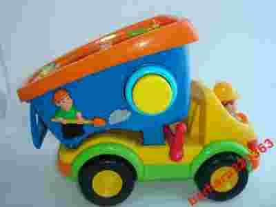 używaną wywrotkę-sorter klocków interaktywna brak oryginalnych klocków dołożyłam jeden pasujący-uruchamiający dźwięk kierowca nie jest oryginalny,ale pasuje i uruchamia funkcje dźwiękowe stan widoczny na real foto zabawka odświeżona na mokro na baterie-w komplecie GRATIS-MASKOTKA-Serce