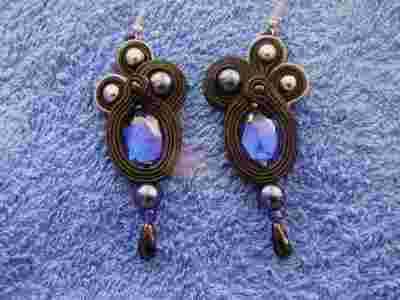 Soutache sutasz KOLCZYKI kobalt kryształowe wesele