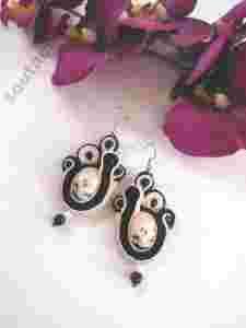 Soutache sutasz KOLCZYKI nude ecru czerń FLAMING