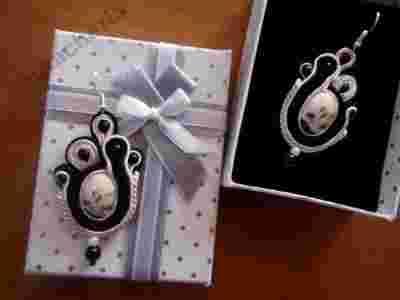 Soutache sutasz KOLCZYKI nude ecru czerń WYJĄTKOWE