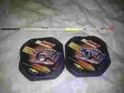 Real foto, żyłki Mikado Dino Monster nowe 4 szpule po 100m każda 2x0,16 i 2x0,18, spławiki 1-6g przelotowe, wirówka, 3 sztuczne przynęty, fluorescencyjna (świeci w nocy) głowica - uchwyt pod wędkę firmy PROLOGIC. Metalowy gwint, nakrętka kontrująca, używana, oryginalne opakowanie,