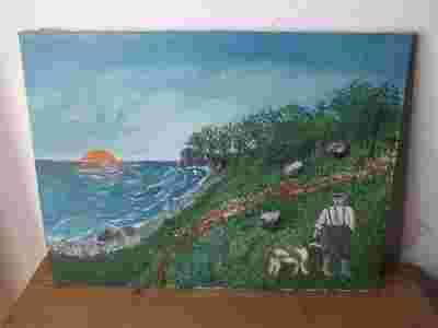 SPACER Z PSEM akryl na płótnie 73x55cm
