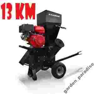 Rębak tarczowy o mocy 13 KM (9.6kW) typ:HOLZINGERdo gałęzi o max grubości 89 mm. Maszyna napędzana jest benzynowym silnikiem spalinowym czterosuwowym. Mechanizm tnący stanowi nóż tnący arozdrabniający zestaw 16 bijaków dodatkowo rozcierających zrębkę przez sito znajdujące się we wnętrzu maszyny.