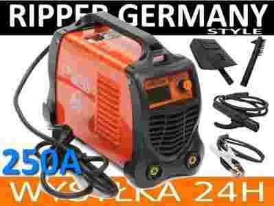 Urządzenie dysponuje mocą spawania od 20 - 250 A. Waga ok 6 kg.