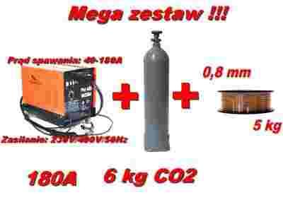 Mega zestaw Spawarka Migomat 180A + butla 6kg CO2 + drut 0,8 mm.