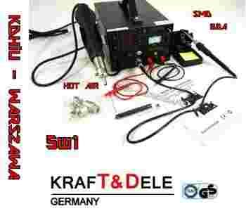 Spawarka do plastiku i stacja lutownicza w jednym niemieckiej marki KRAFT&DELE model KD855 przeznaczona jest dla elektroników, mechaników jak i amatorów lutowania oraz zgrzewania elementów plastikowych. Stacja lutownicza umożliwia precyzyjne lutowanie i wylutowywanie w układach scalonych np SMD, BGA itd. Posiada idealne parametry pracy oraz bardzo dużą dokładność zadanej temperatury. Układem steruje 2 rdzeniowy mikroprocesor który niezależnie kontroluje pracę zasilacza i lutownicy a inteligentny system kontroli PID zadba o idealną kontrolę temperatury grota.