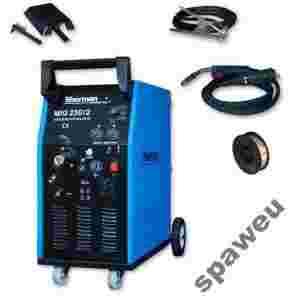 służącym do spawania metodą MIG/MAG stali konstrukcyjnych niskowęglowych oraz stopowych. Sprzęt przeznaczony jest do pracy w pomieszczeniach zamkniętych lub zadaszonych, nie narażonych na bezpośrednie działanie wpływów atmosferycznych. Polecany jest w zakładach usługowych i rzemieślniczych do prac warsztatowych. Spawarka posiada funkcję spawania punktowego z możliwością regulacji czasu spawania oraz czasu przerwy. Urządzenie wyposażone jest w 2-rolkowy podajnik drutu z płynną regulacją prędkości posuwu, 8-stopniową skokową regulację prądu spawania, uchwyt spawalniczy z wtykiem Euro oraz przewód masowy z zaciskiem kleszczowym. Współpracują ze szpulami drutu 5kg i 15kg (szpula max 280mm). Umożliwiają spawanie stalowymi drutami spawalniczymi o średnicy 0,8 i 1,0 mm MIG 230/2 może być zasilany napięciem jednofazowym z sieci 230V lub międzyfazowo z sieci 400V