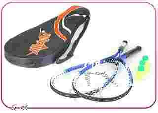 - dwie jednoczęściowe stalowo-aluminiowe rakietki (czerwone lub niebieskie)