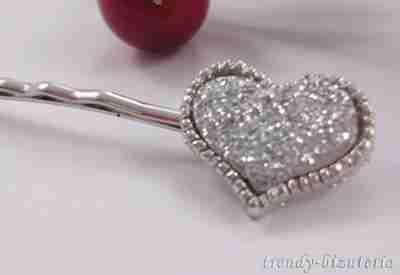 Spinka - wsuwka, srebrne SERCE, brokat - HURT