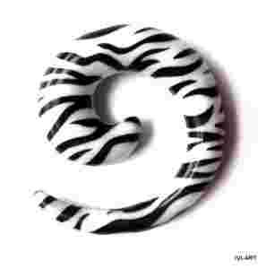 Przedmiotem sprzedaży jest rozpychacz - spirala 6mm, wykonana z akrylu, wzór BIAŁA ZEBRA W CZARNE PASKI. Grubość spirali - 6mm, wysokość - 28,5mm, szerokość - 25,0mm.