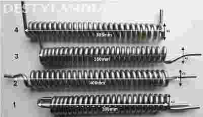 SPIRALA POJEDYNCZA 43MM SKRAPLACZ WĘŻOWNICA – wężownice chłodzące wykonane z 3m rurki kwasoodpornej nierdzewnej AISI304 o średnicy 8mm do montażu w chłodnicach wykonanych z rury 45-50mm. Długość spirali chłodzącej od 30-40cm, średnica zwojów około 42-43mm. Wlot i wylot w jednym miejscu albo po obu końcach spirali.