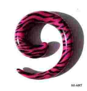 Przedmiotem sprzedaży jest rozpychacz - spirala różowa zebra w czarne paski, wykonana z akrylu. Grubość spirali - 5mm, wysokość - 28,5mm, szerokość - 24,5mm.