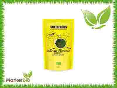 Ekologiczna spirulina to rodzaj zielononiebieskiej mikroalgi o kształcie spirali. Ta słodkowodna alga dostępna w formie sproszkowanej pozyskiwana jest z najwyższej jakości glonów z kontrolowanych upraw. Jej nazwa pochodzi od spiralnego kształtu, jaki naturalnie przyjmuje. Zawiera naturalny barwnik chlorofil. Jest źródłem błonnika oraz wyróżnia się bardzo wysoką zawartością pełnowartościowego białka roślinnego.
