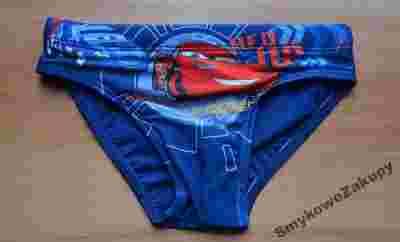 Kąpielówki w kolorze granatowym z nadrukiem samochodu, w pasie ściągacz, z przednią podszewką,  idealne na lato.