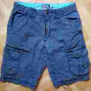 Spodenki w stanie bardzo dobrym wręcz idealnym, bez większych śladów używania, noszenia, w pasie gumka,jest możliwość zwężenia. Spodenki posiadają kieszenie na nogawkach zapinane na zatrzaski, z tyłu również dwie kieszenie. Są bardzo wygodne, z naturalnej, czystej bawełny. Zdjęcie przedstawia faktyczny wygląd spodenek (real foto).