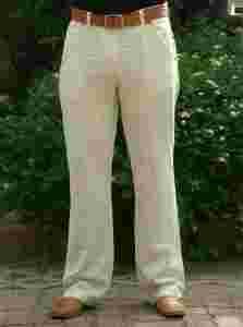 Oferuję do sprzedania 5 par całkowicie nowych spodni męskich "Dockhouse" wykonanych z materiału 45% bawełna + 55% len. Spodnie w stylu Al Capone ;) - piękny piaskowy kolor z jasno-brązowymi paseczkami. Poszerzane nogawki ukrywające niedostatki figury dodatkowo pięknie układające się na bucie. Szlufki na pasek o szerokości max. 5,5 cm, na tylnych kieszeniach haftowany wzorek. Spodnie z fotografii to rozmiar 36, który w widziany sposób układał się na osobie o wzroście 184 cm, wadze 87 kg i pasie 94 cm. Podaję wymiary spodni rozm. 36: