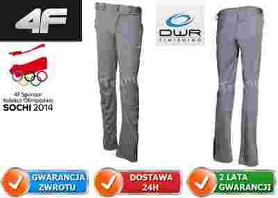 Spodnie trekkingowe wykonane są z materiału typu softshell, który bardzo dobrze chroni przed zimnem i wiatrem oraz jest niezwykle odporny na uszkodzenia mechaniczne. Dzięki impregnacji DWR, spodnie 4F T4L14SPDT001 dobrze chronią także przed lżejszym deszczem.