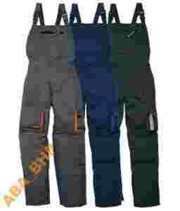 Ogrodniczki robocze Mach2 z poliestru 65% i bawełny 35%. Gumka w talii. Szeroka kieszeń centralna zapinana na zamek błyskawiczny. Miejsca na nakolanniki. 8 kieszeni. |