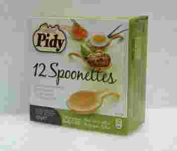 Spoonettes Zaskocz swoich klientów bądź gości oferując im wyjątkowe przekąski. Spoonettes to złocistobrązowe, chrupiące, gotowe do napełnienia jadalne łyżeczki z ciasta półfrancuskiego. Opakowanie zawiera 12 sztuk łyżeczek o długości ok. 7,5cm Instrukcja: W zależności od przepisu napełnione łyżeczki podgrzewa się przez 5 do 10 minut w nagrzanym wstępnie piekarniku w temperaturze 160°C. Przed podaniem na zimno, łyżeczki należy podgrzać w piekarniku, a następnie wystudzić. Propozycje użycia: Łyżeczki nadają się na smaczną przystawkę lub deser z ciepłym lub zimnym wypełnieniem. UWAGA!!!Towar w 100% oryginalny bezpośrednio od dystrybutora produktów PIDY na Polskę. Skład: mąka pszenna, olej słonecznikowy, masło, woda, sól, cukier. Waga netto: 42g Data ważności: 23.10.2013 Producent: PIDY/DPF-UE Produkt Spoonettes pochodzi z oficjalnej sieci dystrybucyjnej firmy Pidy i został wprowadzony na rynek polski przez importera zgodnie z obowiązującymi przepisami skarbowymi. Cena zawiera dodatkowe opakowanie kartonowe oraz zabezpieczenie przesyłki przed uszkodzeniem.