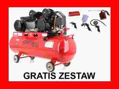 Sprężarka posiada zbiornik o pojemności 100 litrów.