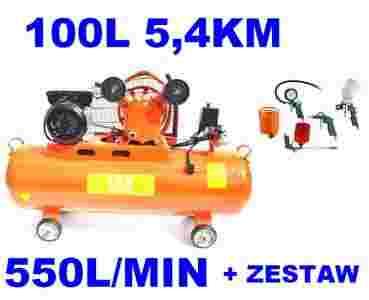 SPRĘŻARKA KOMPRESOR 100L 5,4KM 550L/min +ZESTAW